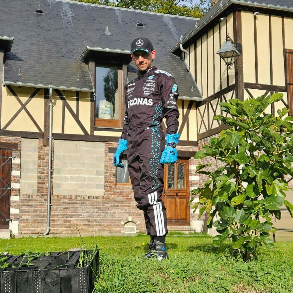 2025 George Russell Mercedes-AMG Petronas F1 Team F1 Replica Race Suit adheres to CIK-FIA Level 2 standards. Constructed with high-Grade, glossy nylon Cordura fabric and cotton-towel lining, the suit features all sublimation logos, heavy-duty zippers, and a sleek, race-inspired design with prominent frontracing strips. The back and sleeves are tailor-made with action back stretchable material to increase comfort while driving.